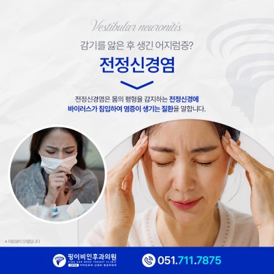 부산이비인후과 전정신경염 후유증, 왜 오래갈까요? 감기를 심하게 앓고 난 후 갑자기 어지럽고 속이 메스꺼워지는 증..