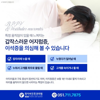 부산어지럼증 숨은 원인을 찾기 위해 어지럼증이 누구에게나 흔히 나타날 수 있는 증상이라고 해서 가볍게 여기며 방치..